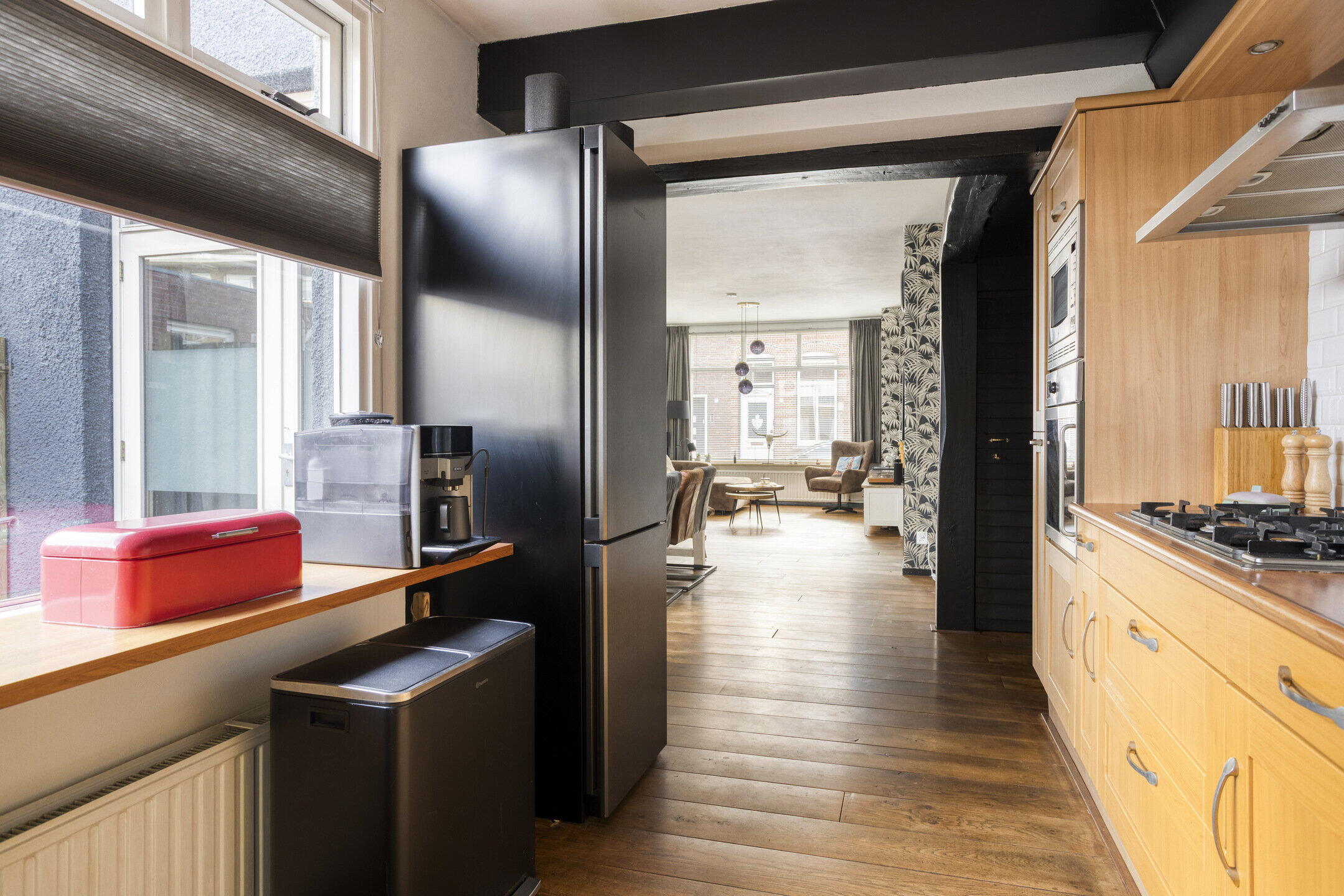 De woonkamer is ruim opgezet en biedt volop mogelijkheden. Er is meer dan genoeg plek voor een royale, comfortabele bank én een 6-persoons eettafel waar je gezellig kunt tafelen met familie en vrienden. De openslaande deuren naar de tuin zorgen voor een prachtige lichtinval en maken de verbinding tussen binnen en buiten optimaal. De keuken is eveneens ruim en praktisch ingericht met diverse inbouwapparatuur. Hier kook je met gemak de lekkerste maaltijden. Vanuit de keuken heb je toegang tot de achterdeur richting de tuin. Extra prettig is het separate toilet op de begane grond.