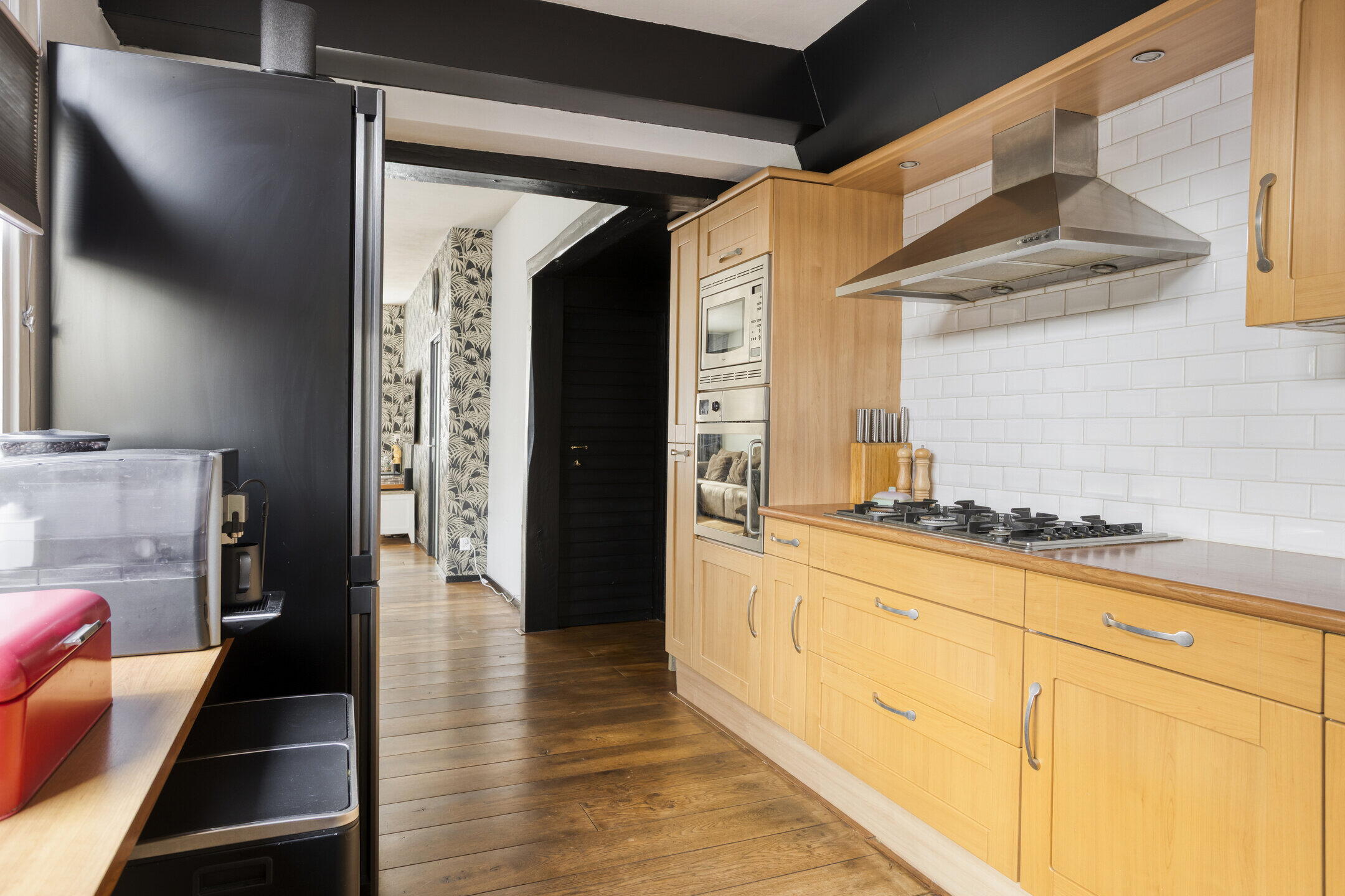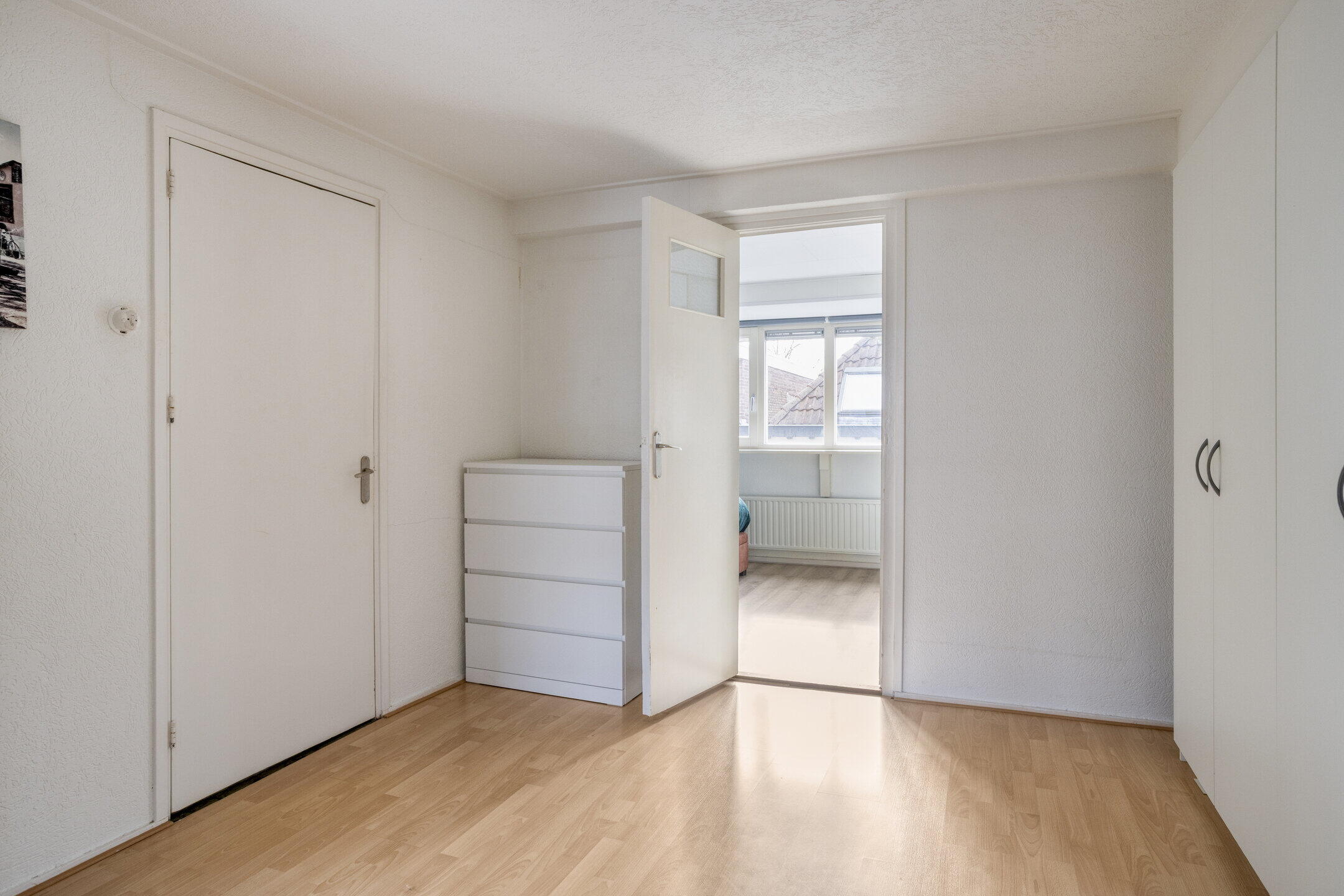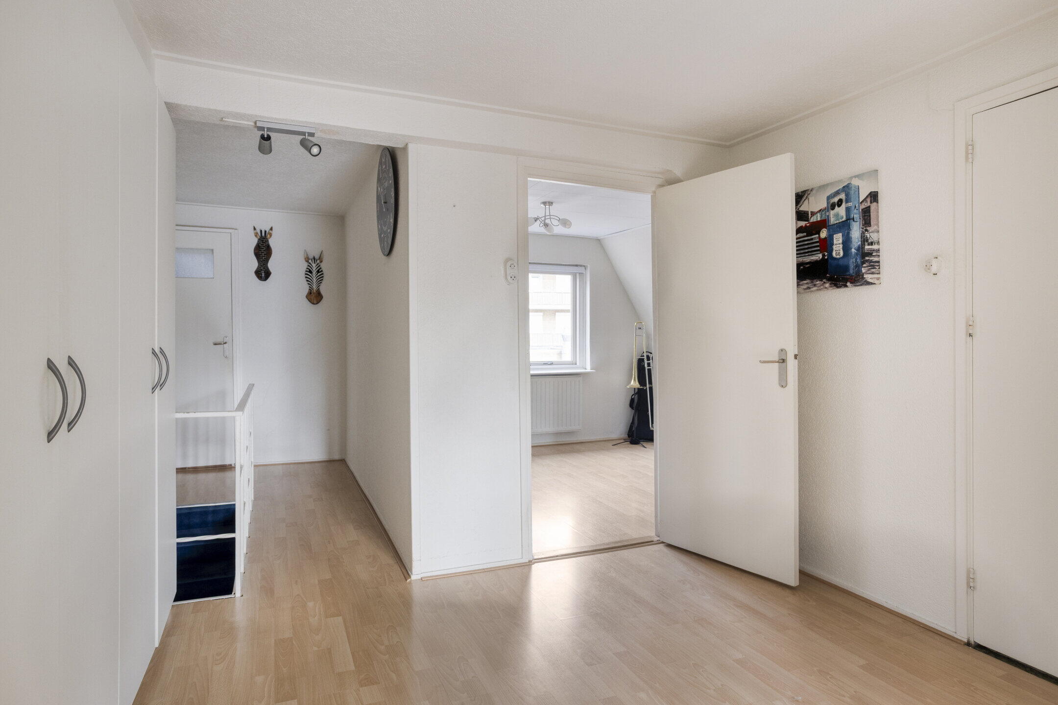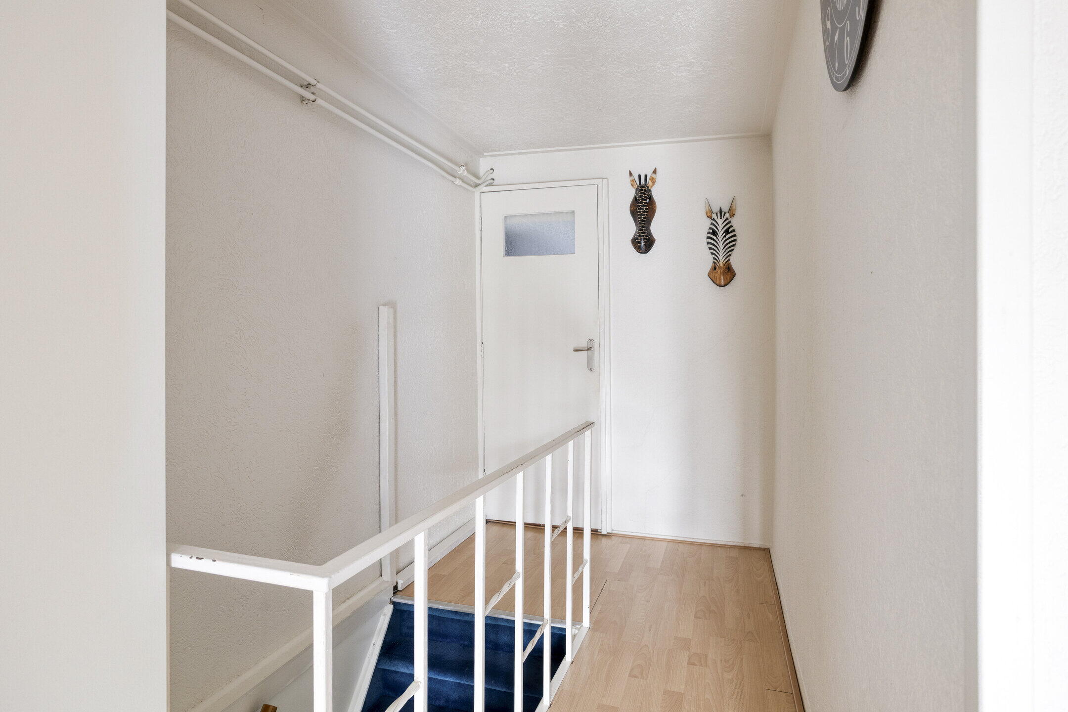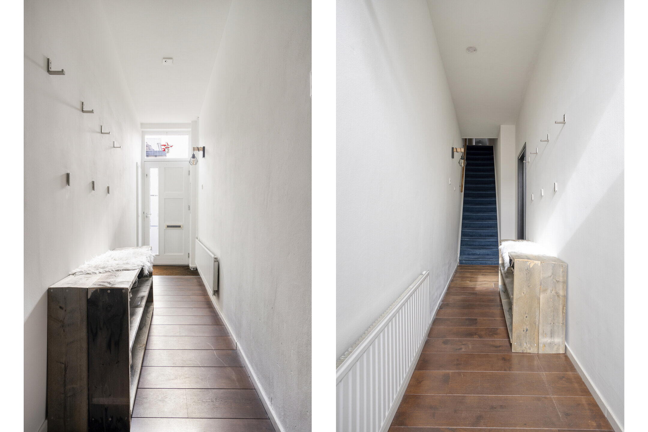 Je stapt de woning binnen via een lichte hal met strakke wanden die direct een verzorgde eerste indruk geeft. Vanuit hier bereik je de trap naar de eerste verdieping én de woonkamer. Een fijne, open entree die rust en ruimte uitstraalt.