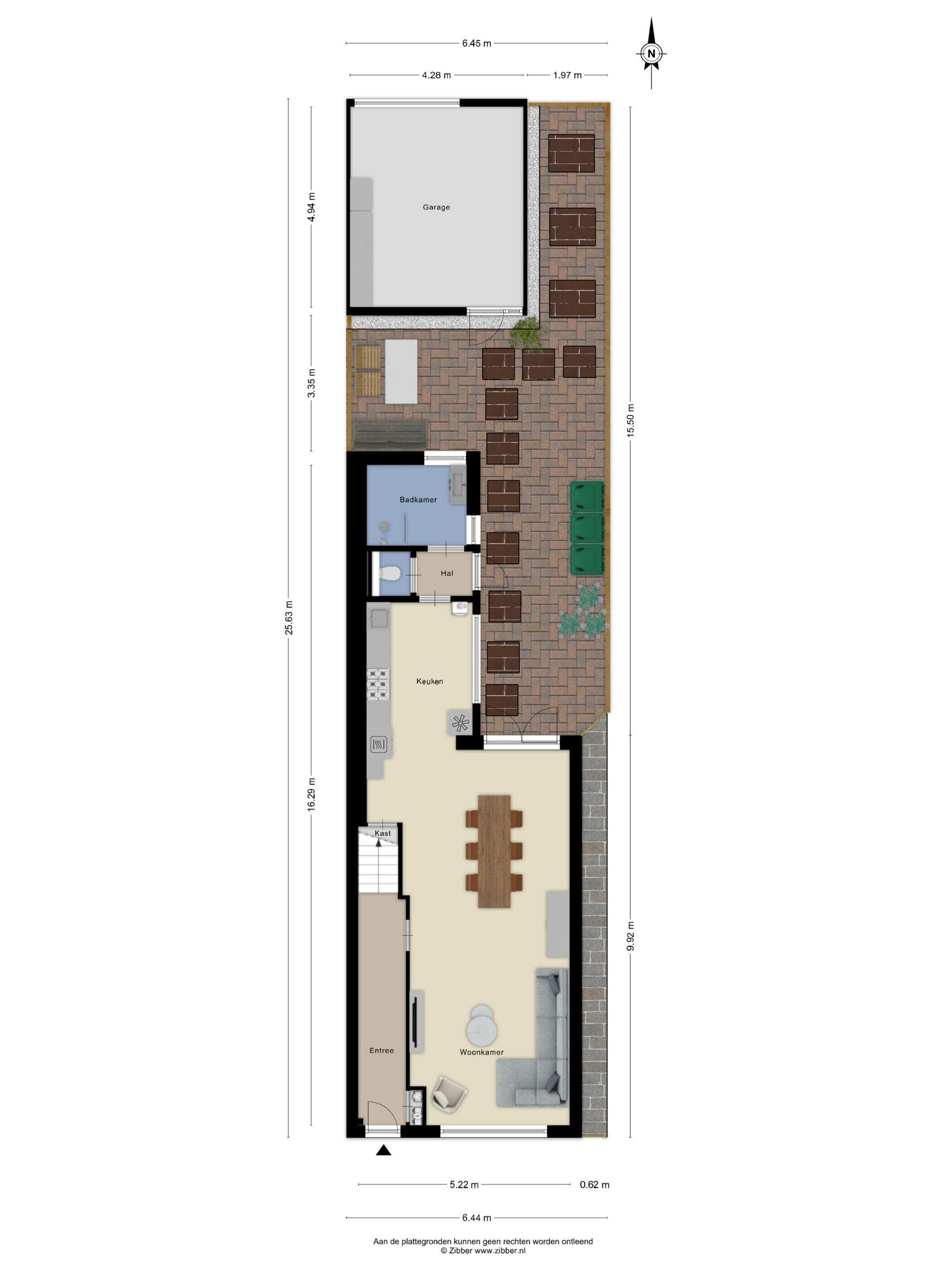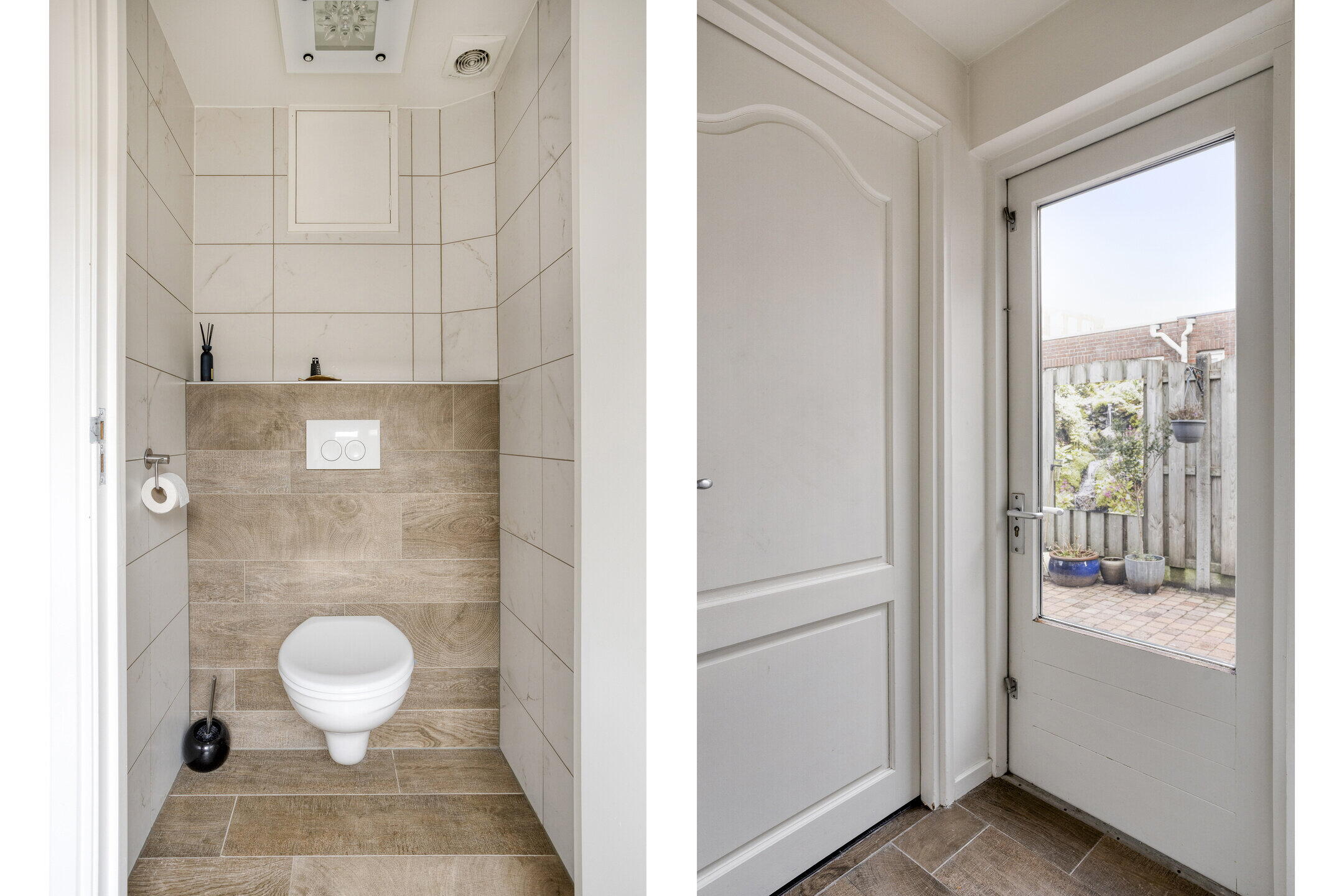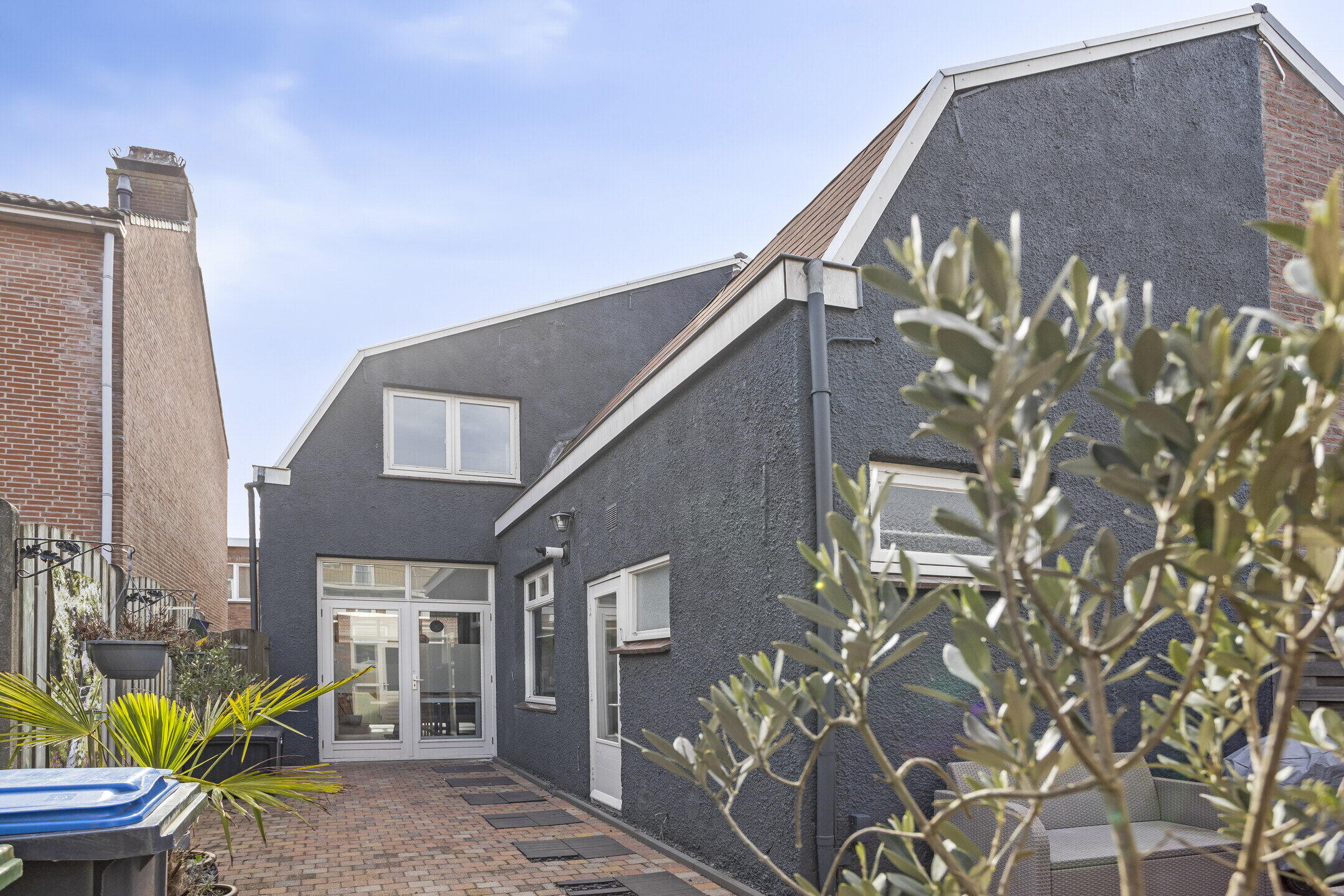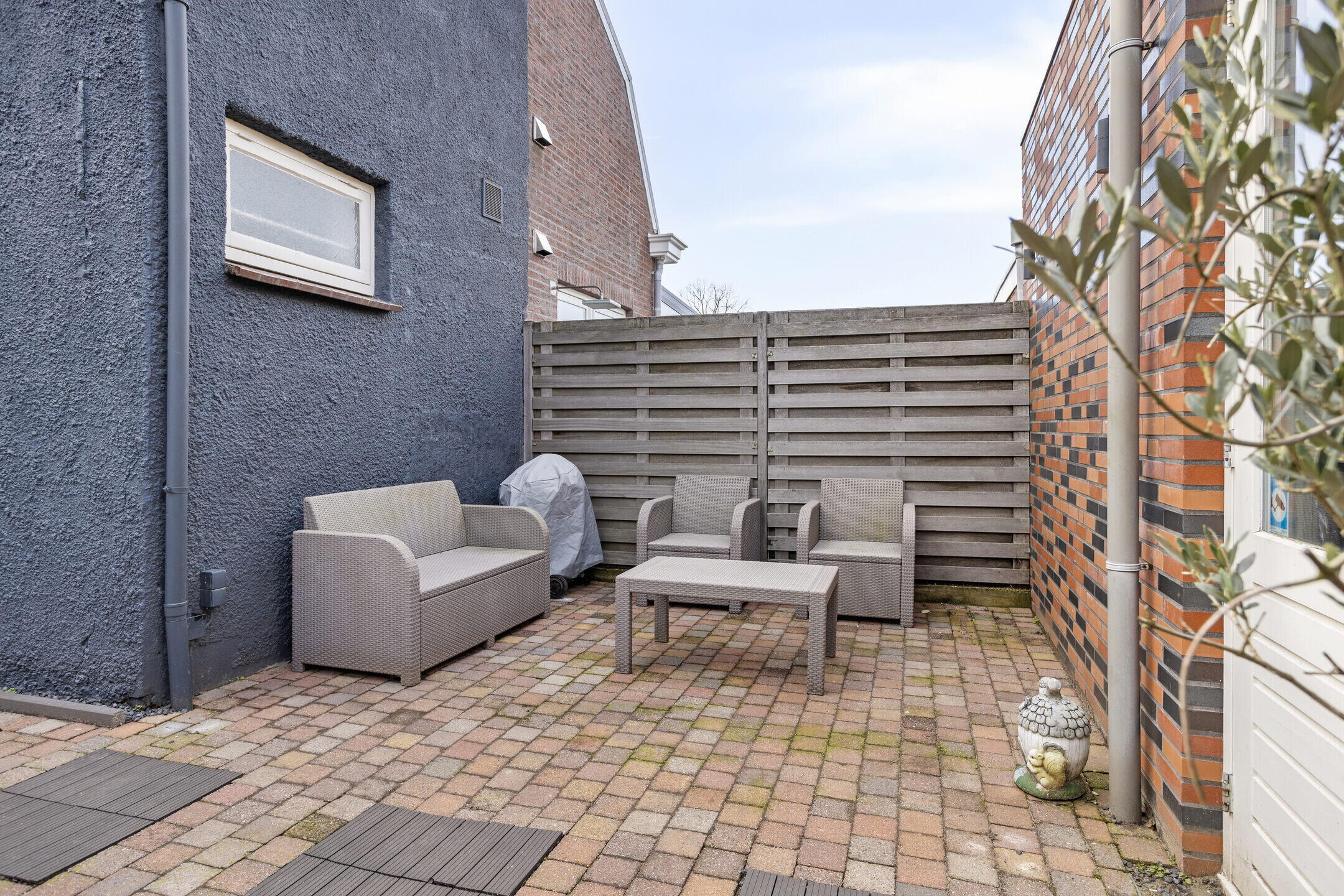 De achtertuin is netjes bestraat en onderhoudsvriendelijk aangelegd. Het gezellige terras nodigt uit om lange zomeravonden buiten door te brengen. Via de tuin heb je toegang tot de garage en er is bovendien een handige achterom aanwezig naar de twee eigen parkeerplekken. Een fijne buitenruimte waar je in alle rust kunt genieten.